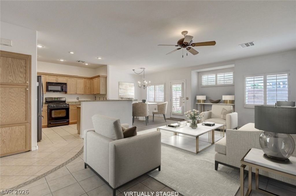 Welcome home! This charming, move-in ready townhome is well cared for, immaculate, and ready for new owners! Soaring 10' ceilings and natural light filtered through plantation shutters make this home ready for entertaining and everyday living. Tasteful updates in the kitchen include granite countertops, stained cabinets, and tile floors. This home provides a primary ensuite bedroom with walk in closet. Two more bedrooms give plenty of room for family, guests or an office!. Get ready to relax or entertain in the backyard which includes a covered patio area. Attached 2-car garage features built in cabinets and epoxy flooring. Great location with close proximity to the 215, airport, Strip, shopping and more!
