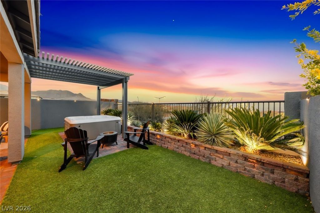 This Meticulously Maintained Gated Residence Captures Panoramic Mountain, City & Strip Views W/ No Rear Neighbors. 4 Beds, Upstairs Loft & Downstairs Flex Space, This Layout Balances Sophistication & Comfort. LVP Flooring Flows Through Main Living Areas W/ Plantation Shutters & Designer Color Palette. The Open Living Space Is Anchored By A Custom Feature Wall & Sleek Linear Fireplace. Chef's Kitchen Showcases Marble Countertops, Crown Mold Cabinetry, Pull-Out Shelving, Whirlpool Stainless Appliances, Double Ovens, Gas Cooktop, Walk-In Pantry & Expansive Island W/ Farm Sink. Backyard Is Designed For Elevated Entertaining W/ Pavers, Synthetic Turf, Palm Trees, Covered Patio W/ Lattice Extension, Gate Dog Run, Spa & Built-In BBQ W/ Beverage Fridge - All Framed By Iconic Strip Views. Upstairs, A Loft Separates Secondary Bedrooms From Primary Retreat W/ Balcony, Custom California Closet & Spa Bath W/ Soaking Tub & Separate Shower. Minutes From Dorrell Academy, 215 & Downtown Summerlin.