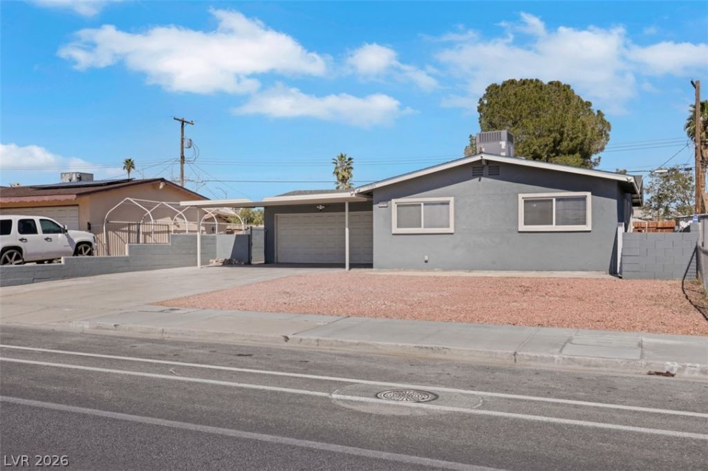 Well-maintained single-story home offering 3 bedrooms, 1.5 baths (1 full, 1 half), and a 2-car garage with an extended covered carport. The layout features a comfortable living room that opens to an eat-in kitchen with white cabinetry, granite countertops, and ample cabinet space. Flooring includes laminate throughout with carpet in the bedrooms. NEW roof in 2025, NEW HVAC in 2024. The 2-car garage provides added versatility with HVAC routed into the space, upgraded lighting, and a dedicated 220-volt outlet suitable for tools, equipment, or hobby use. A separate storage room is located just off the garage, offering additional room for storage or workspace needs. Enjoy a large, fully fenced back yard with a patio area and plenty of open space. The front yard features low-maintenance desert landscaping and an extended driveway for additional parking. Conveniently located with access to shopping, dining, parks, and major roadways. Buyer to verify all information and measurements.