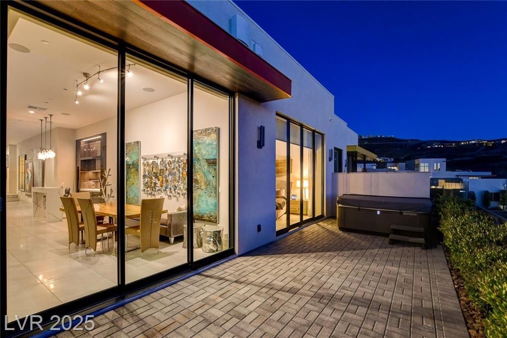 Stunning Christopher home featuring an open spacious modern floorplan . This stunning property is located in the prestigious hills of McDonald Highlands. Nestled above it all with breathtaking views of the LAS VEGAS Strip, Mountains, and Golf Course. This gorgeous masterpiece includes all the finest amenities. Wall to wall windows with automatic blinds throughout. Two fireplaces in Great room and Primary bedroom. Wet bar island/wine refrigerator. Gourmet kitchen Bosch appliances, island and sitting counter with stools. Huge Primary bath and gigantic custom closet . Each bedroom with en suite bath. Elevated third bedroom build out with floor to ceiling glass walls