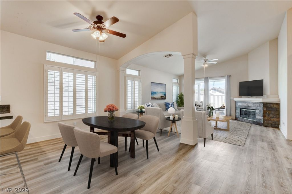Highly sought after Arbor View High School, this single-story home in a desirable neighborhood is on a quiet street. Brand NEW wood look laminate flooring and freshly painted. Open floor plan includes 3 beds, 2 baths, spacious family/dining room w/ gas fireplace, and a laundry closet w/ included washer & dryer. Kitchen contains breakfast bar, granite countertops, all appliances. Spacious primary suite includes a walk-in closet. Primary Bath includes a door for the toilet. Attached 2 car garage shelves for storage. Conveniently located within minutes to parks, freeways and shopping.