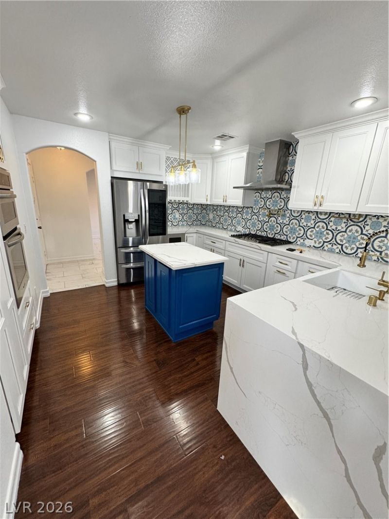 Fully remodeled property in gated community! Stainless steel double oven, quartz counter tops , new cabinets with brushed gold handles to match gold brush pot filling faucet and beautiful mosaic back splash. Home features vaulted ceilings, wood floors throughout the entire home with the exception of den and bathrooms (den features marble flooring). Upstairs you'll find the primary bedroom with rain shower head and mosaic tile on floor and shower. BIG home with 3 bed, 2.5 baths, den plus LARGE loft! Very Spacious backyard to for any occasion. Water softner and all appliances included